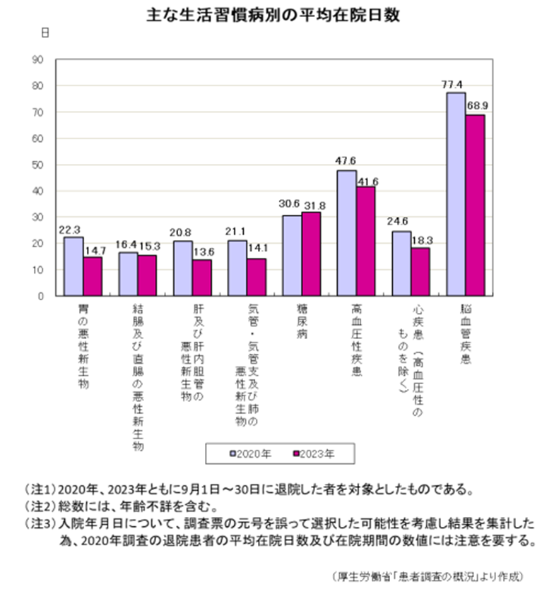 2020 年から 2023 年にかけて、糖尿病以外の生活習慣病の在院日数は減少しているようです。