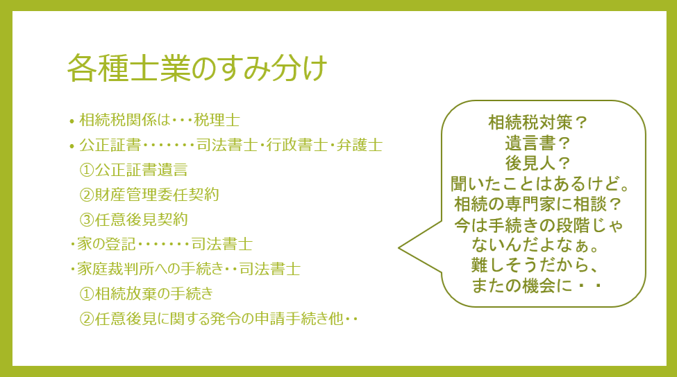 以上が、私が考えております相続前相談です。